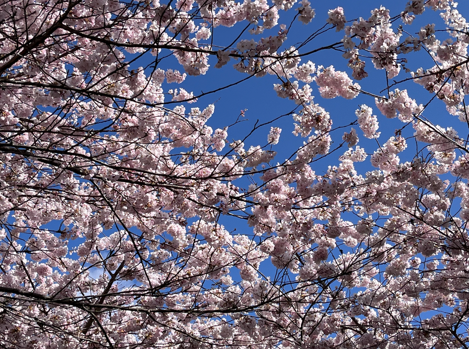 Rows of cherry trees bloom in unison, creating a canopy of pink against the blue skies. Whether you're walking beneath the blossoms or viewing them from afar, the experience is both calming and uplifting.