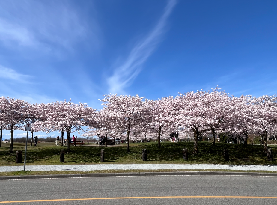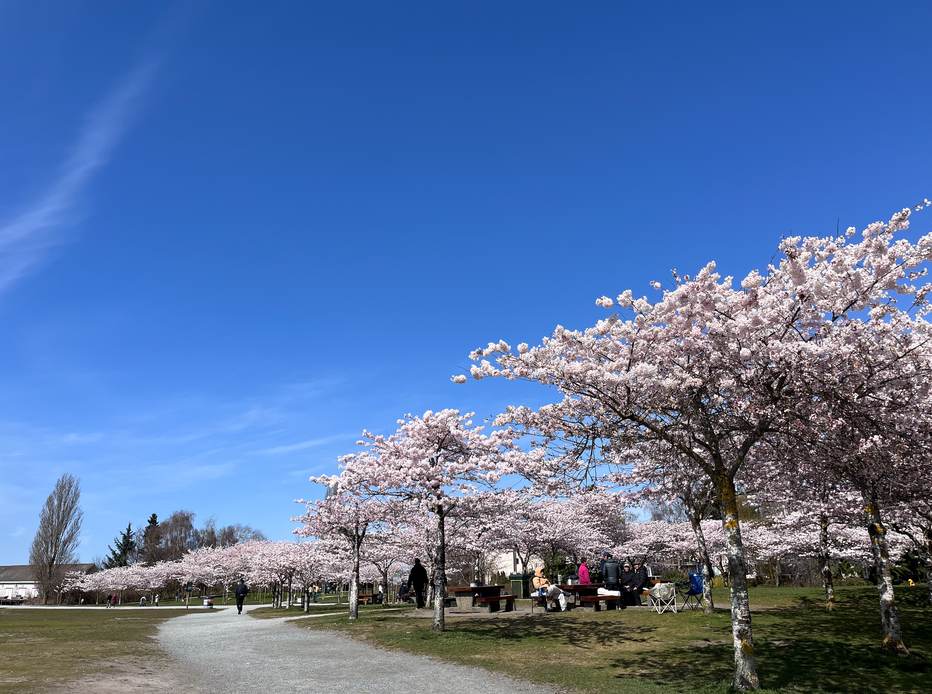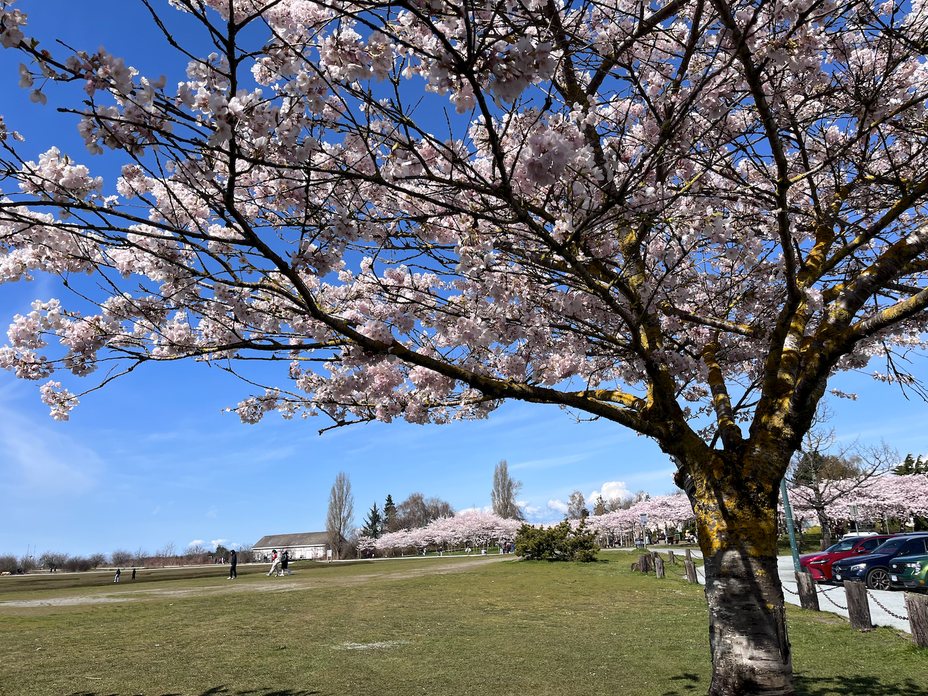 Located along the waterfront in Steveston, Garry Point Park becomes one of Richmond’s most photographed destinations during cherry blossom season.
