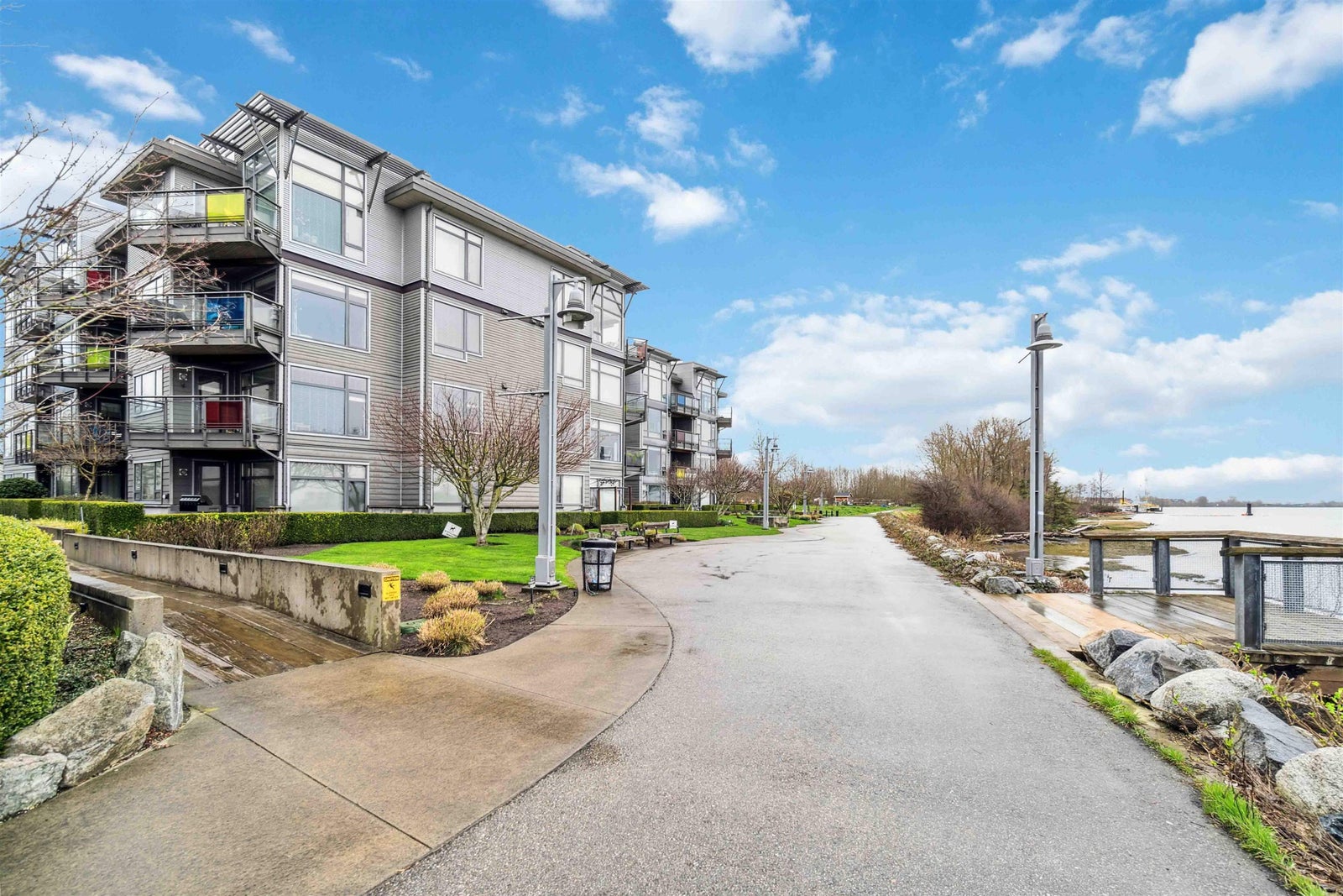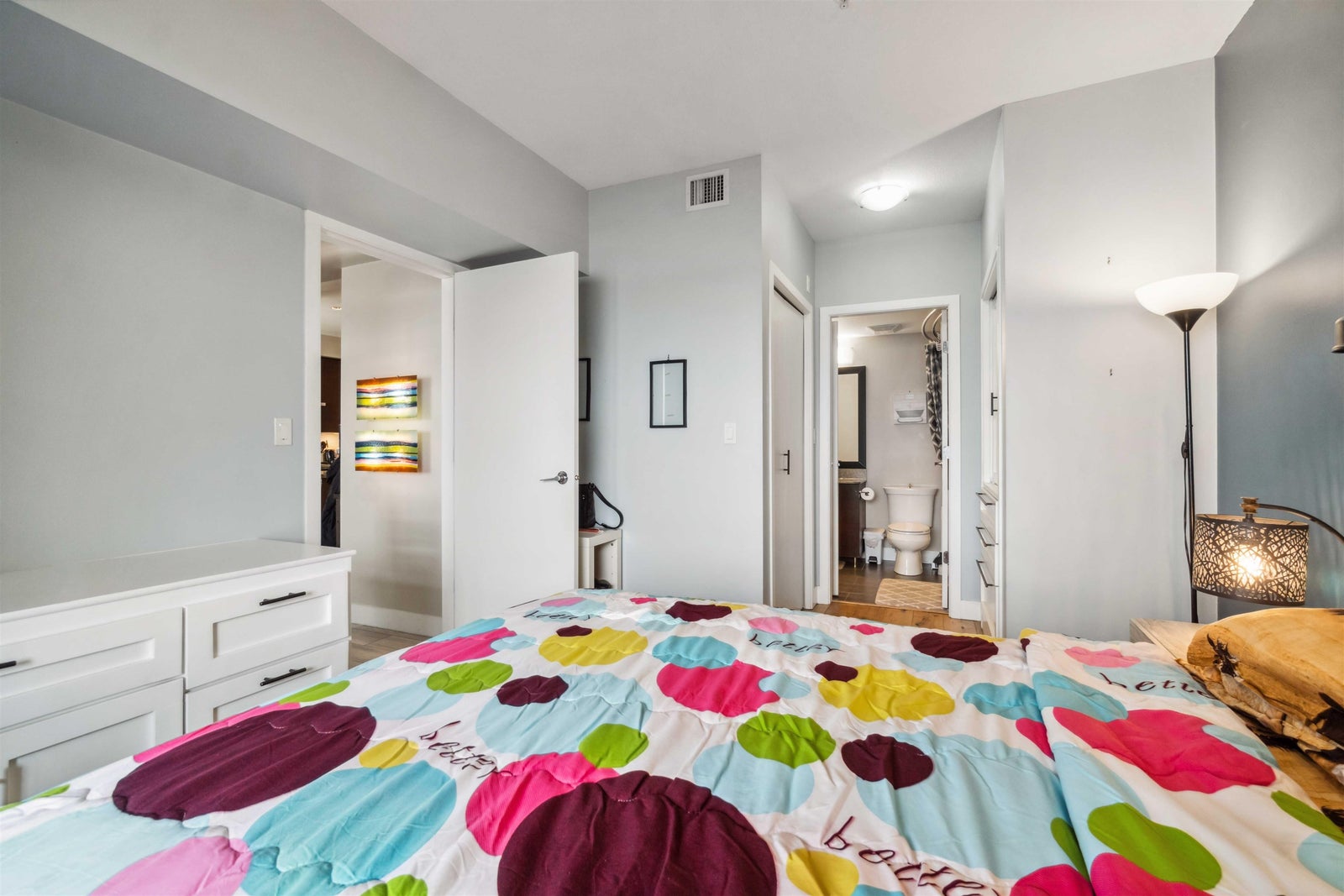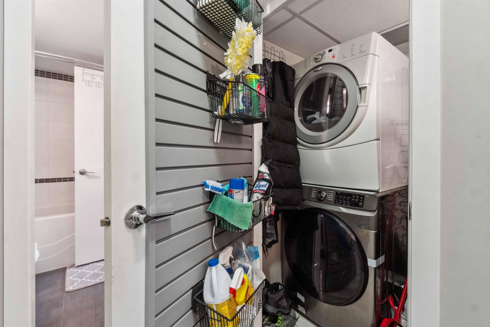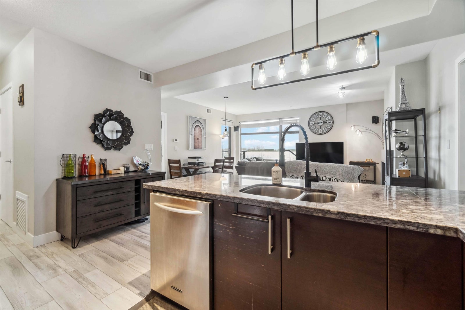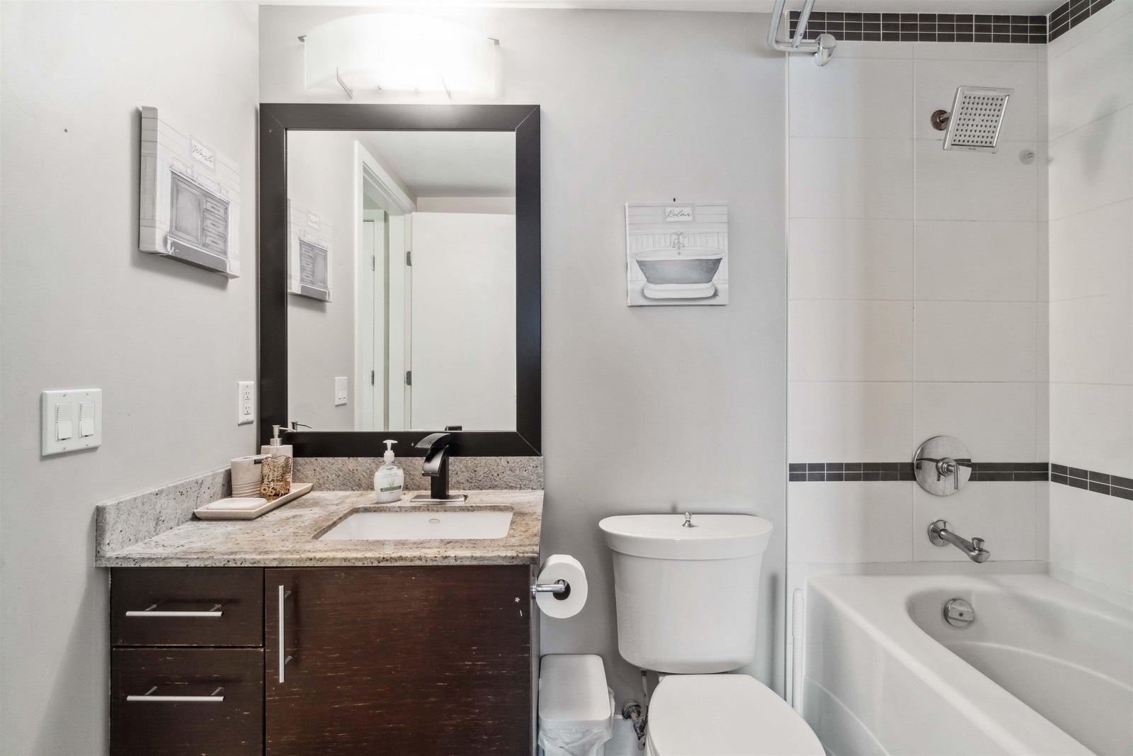 Waterstone Pier's elegant home features a beautiful kitchen w/granite countertops, pot lighting, high ceilings & open layout. Gas, Geothermal heating & cooling (Air Conditioning) are INCLUDED in strata fees! Master br and Living Room facing East w/ an unobstructed view of Mount Baker. Smart Home Technology & Automation (Alexa) control all lighting, TV & integrated audio systems which include prewired speakers throughout the home. 2nd br was used as a Media Room w/built-in cabinets for home theater. Adjacent to Entertainment Complex, Silver City, Ice Rink, Watermania, public transit. Close to Ironwood Plaza w/quick freeway access. Woodward Elementary & McNair Secondary in catchment. 1 Parking+1Locker! Upgrades:Washer (2022) Flooring (2020) https://my.matterport.com/show/?m=zLDuoE4hPEC&mls=1