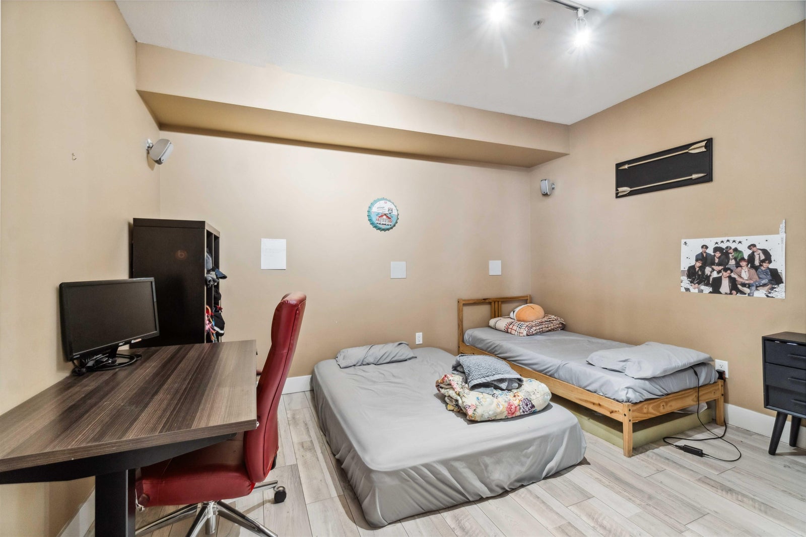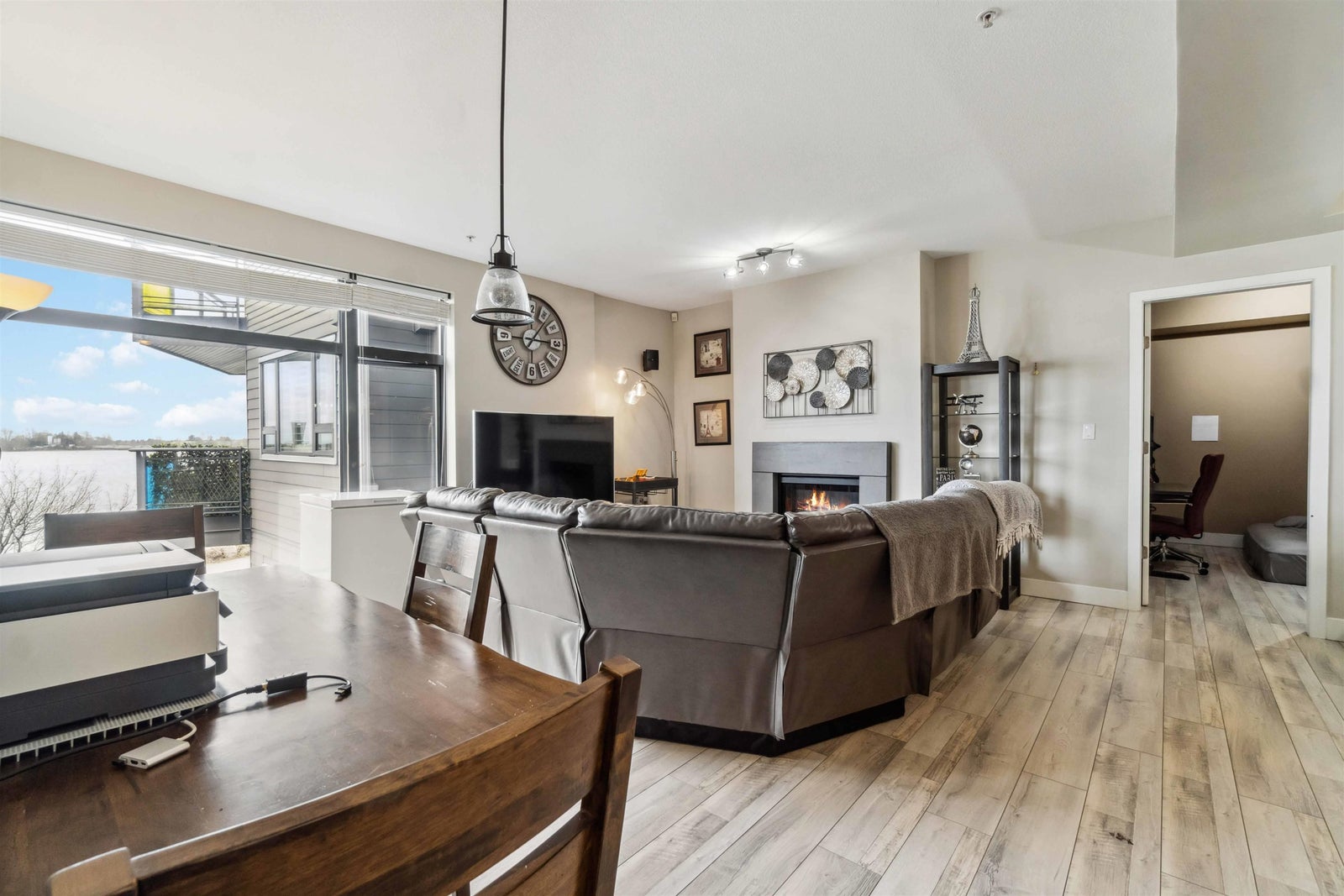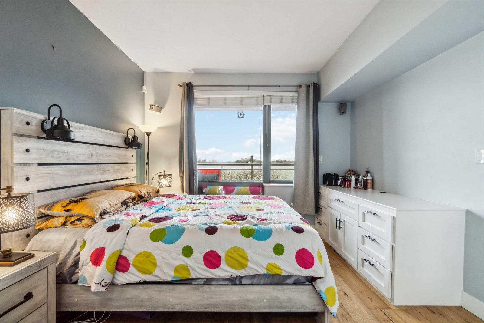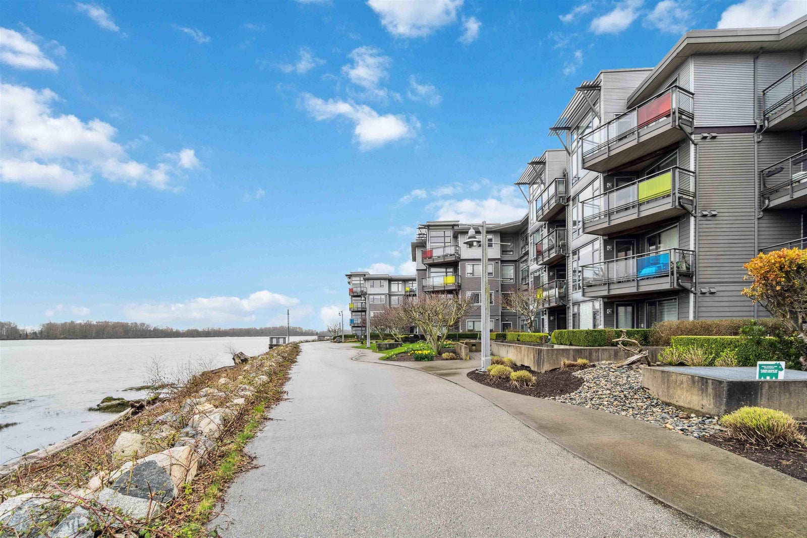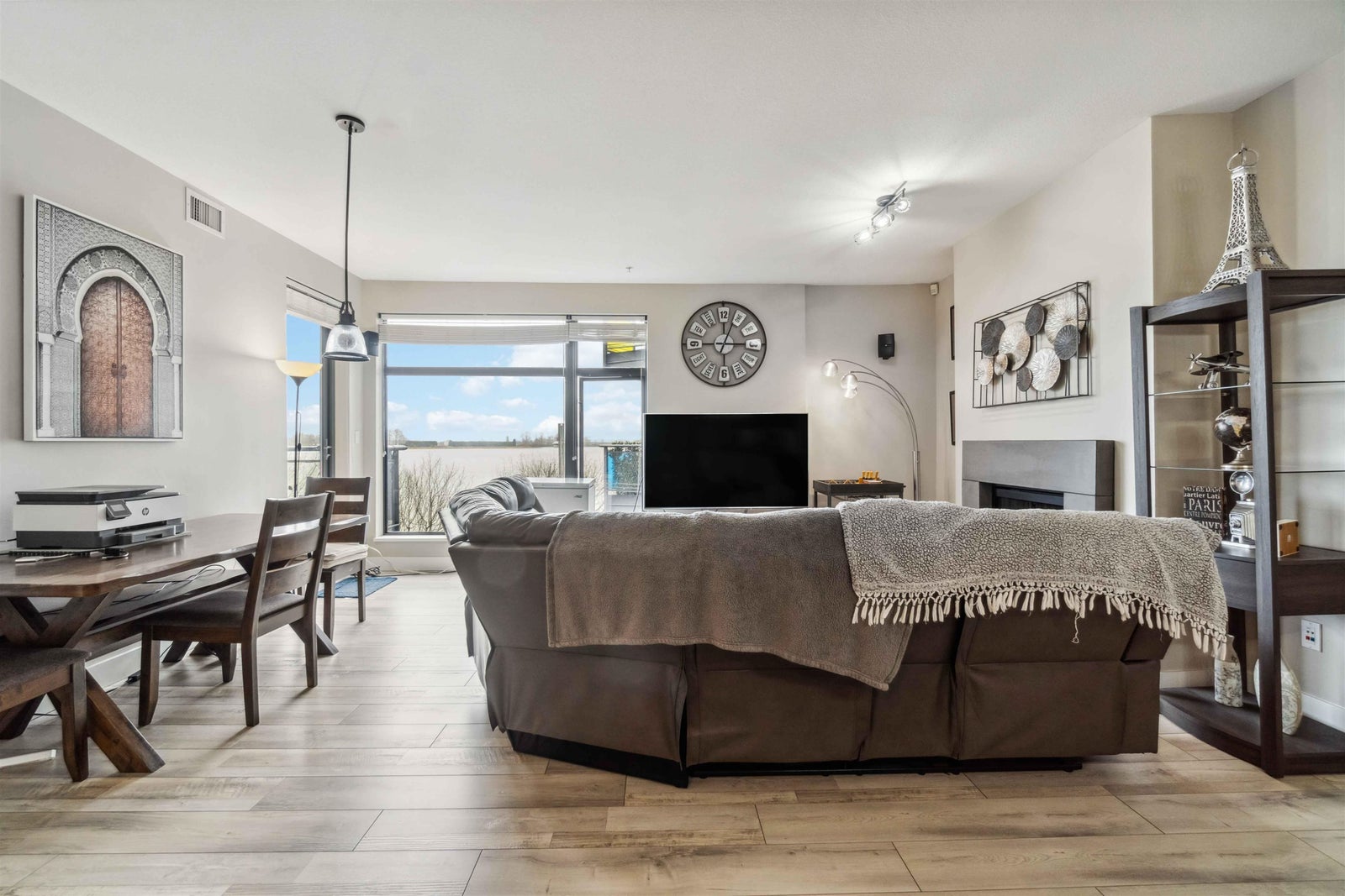 Waterstone Pier's elegant home features a beautiful kitchen w/granite countertops, pot lighting, high ceilings & open layout. Gas, Geothermal heating & cooling (Air Conditioning) are INCLUDED in strata fees! Master br and Living Room facing East w/ an unobstructed view of Mount Baker. Smart Home Technology & Automation (Alexa) control all lighting, TV & integrated audio systems which include prewired speakers throughout the home. 2nd br was used as a Media Room w/built-in cabinets for home theater. Adjacent to Entertainment Complex, Silver City, Ice Rink, Watermania, public transit. Close to Ironwood Plaza w/quick freeway access. Woodward Elementary & McNair Secondary in catchment. 1 Parking+1Locker! Upgrades:Washer (2022) Flooring (2020) https://my.matterport.com/show/?m=zLDuoE4hPEC&mls=1