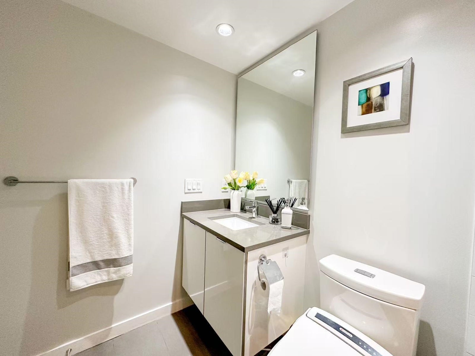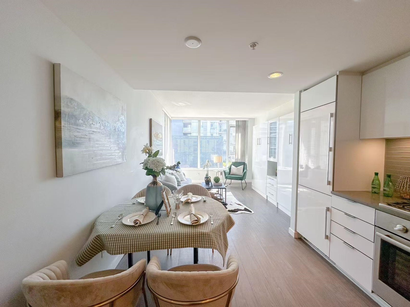 Welcome to Avanti by Polygon! This bright and spacious south-east facing 1-bedroom concrete apartment with ultimate convenience. Located on a quiet street across from a park, just steps away from Aberdeen Centre, Continental Shopping, Yaohan Centre, Union Square, and the new Canada Line station. Enjoy a wide range of resort-style amenities, including a swimming pool, hot tub, dance/yoga studio, lounge, and fitness center. Air cooling & heating system for year around comfort. Bosch brand gas cooktop, self-cleaning wall oven, energy efficient dishwasher, Panasonic microwave and integrated refrigerator completes this ultra-modern kitchen.Bonus: built-in muffin two beds! 1 Parking + 1 Locker included.Public EV charger .Open House 1-4pm Sun , Nov 2