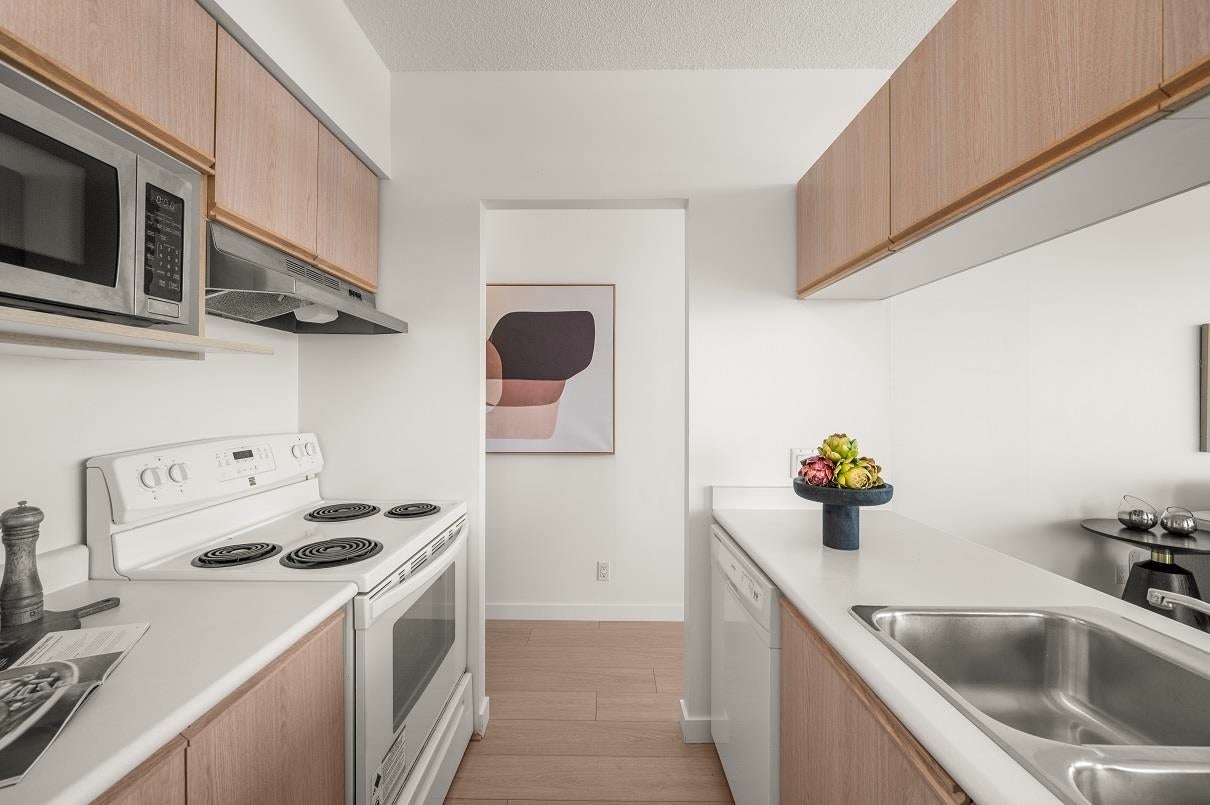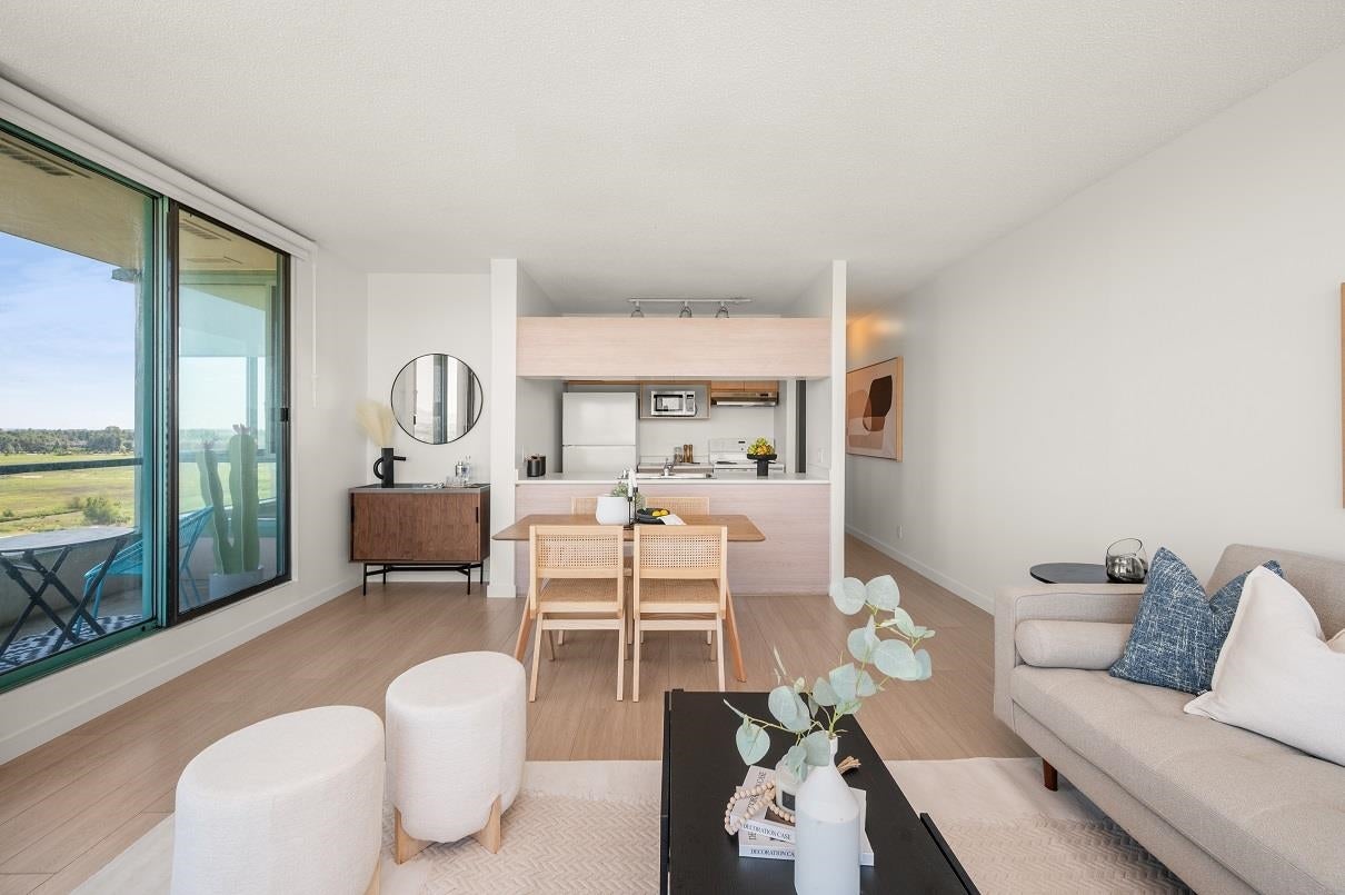 Spacious 1-Bedroom with Park and City Views in the Heart of Richmond Welcome to this beautifully updated 1-bedroom home at Centre Pointe, offering 737 square feet of thoughtfully designed living space. Featuring new wood flooring & blinds, and freshly painted throughout making it move-in ready. Expansive windows frame stunning views of D/T Vancouver, Oakridge, Metrotown & beyond. Ideally located within walking distance of T&T Supermarket, Walmart, & a wide variety of restaurants. You’re also close to the shops at Central at Garden City, Lansdowne SkyTrain Station, and Kwantlen Polytechnic University, a perfect location for both convenience & lifestyle. Offering a full suite of amens including pool, hot tub, sauna, fitness rm & games area. Includes 1 parking & 1 locker.