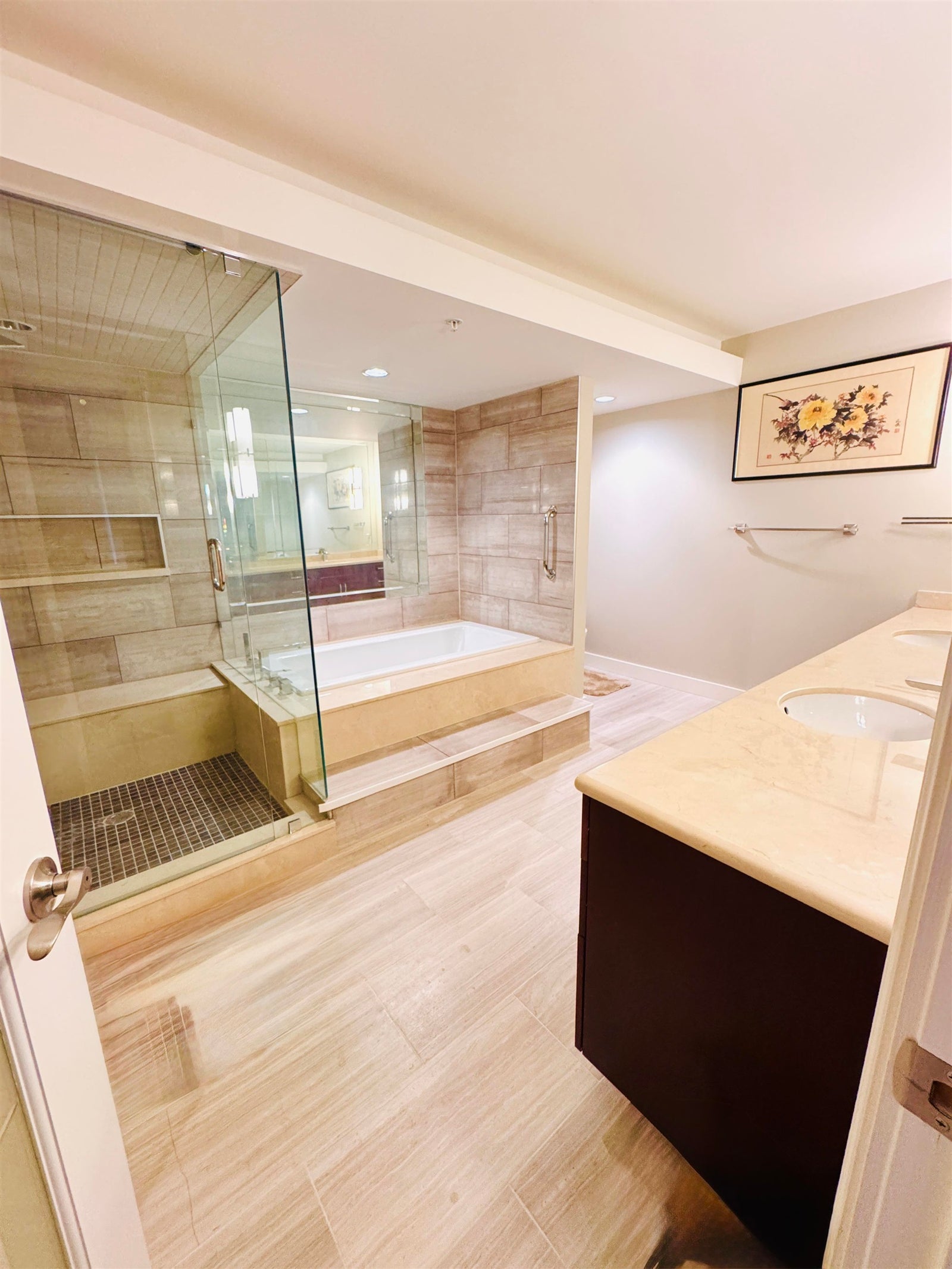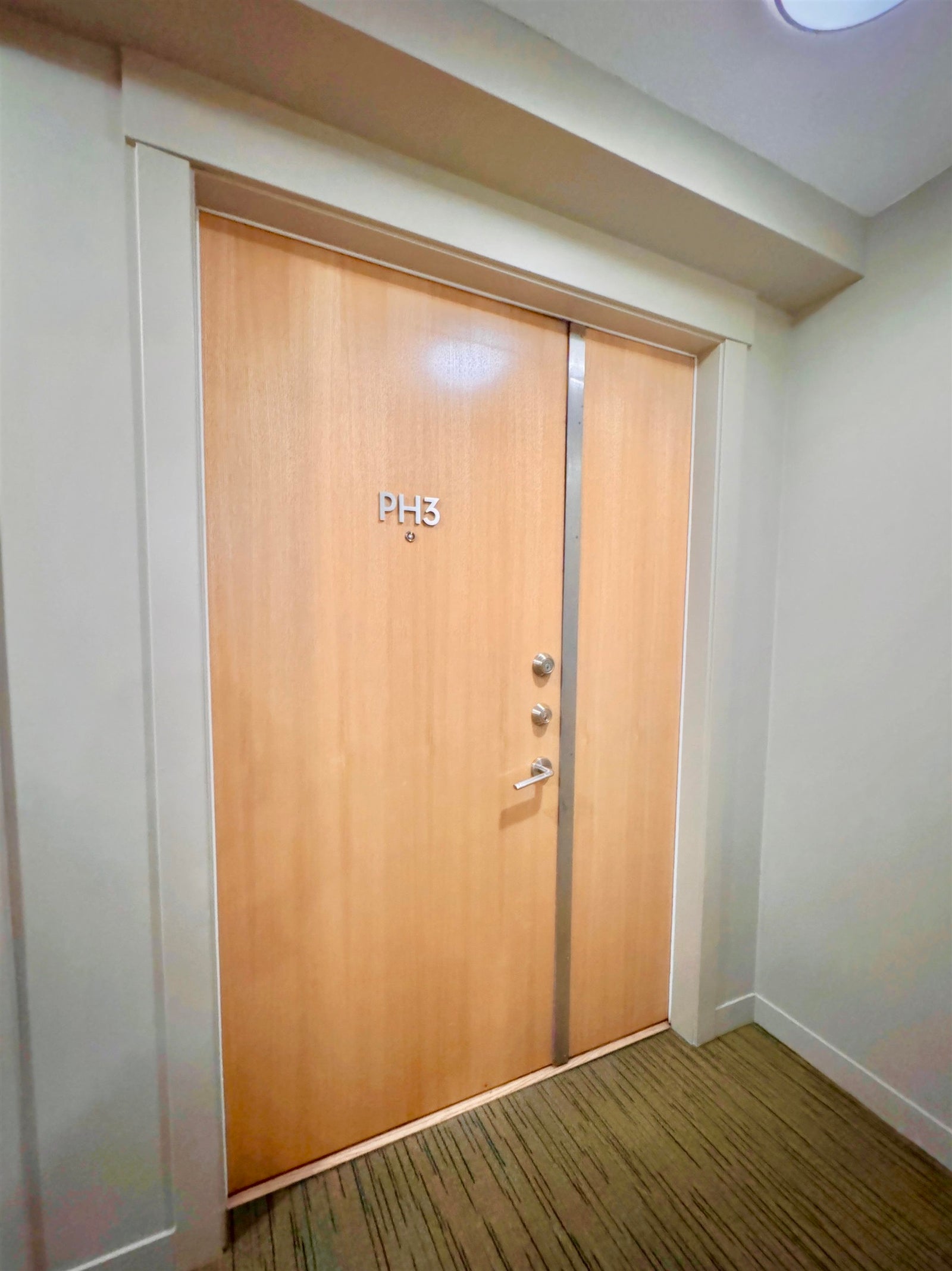 A rare luxury penthouse in the centre of Richmond Brighouse featuring 3 bedrm & a versatile study/den, TWO side-by-side parking stalls. Walk in the grand open lobby and the living dining room with a high ceiling of 16.5' and sweeping panoramic views. Expansive windows flood the space with natural light and the beautiful chandeliers add elegance. Two ensuite bedrooms plus two additional large patios. In-suite Sauna, wine cooler, extra large walk-in-closet, Western kitchen and wok kitchen, double-door fridge, Miele appliances, double kitchen sink and vanity. Enjoy shopping, restaurants in the neighbourhood, close to YVR! Minutes of walk to Richmond Brighouse Station. Central location, panoramic beauty, elegant living!