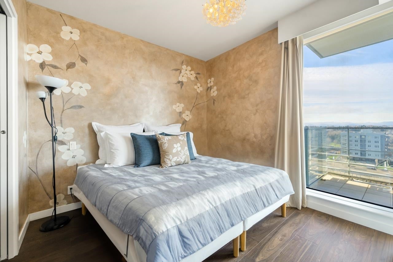 Walk into Luxury at the River Green by ASPAC with amazing waterfront view. This unit offers a spacious & open 1 bedroom 1 bath that is one of a kind layout with EXTRA LARGE balcony, steps from Richmond Olympic Oval wellness center, and beautiful sunset views. Walk to all conveniences, groceries, restaurants, shops. High-end finishes, central heating/cooling. 5-star resort style amenities include 24 hours concierge, indoor pool, sauna, steam room, hot tub, gym, theatre, virtual golf, music and study rooms, billiards table, club house and more! Don't miss it!