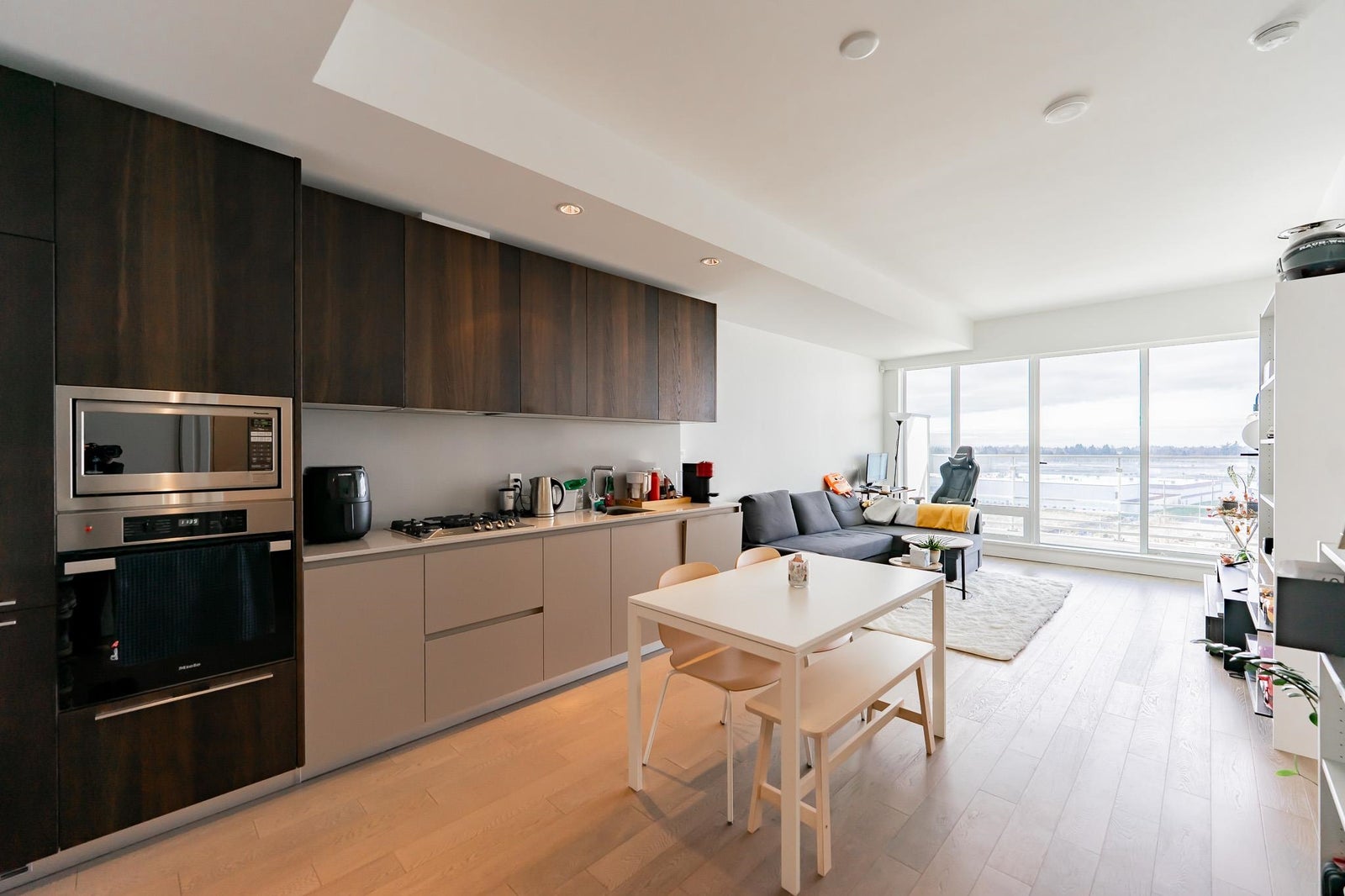 2 RIVER GREEN! Richmond MOST LUXURIOUS condo living. Appreciate the stunning permanent sunset and water view from this WEST facing upper unit! Contemporary, functional 1Bed 1Bath+Den floor plan features expansive 9' ceiling and floor-to-ceiling windows, B&O smart home system, engineered hardwood flooring in main living area. Chief-inspired kitchen with top-performing Miele integrated appliances & Italian Cesar cabinetry was created to perfectly combine elegance and functionality. SIX-STAR AMENITIES including: indoor pool, sauna, water garden, social lounge, BBQ area, piano room, mahjong room, etc. just to make your life here full of fun and excitement! Olympic Oval, T&T, cafes, shops & restaurants are all within walking distance, only within 10 mins drive to YVR, outlet & shopping malls.