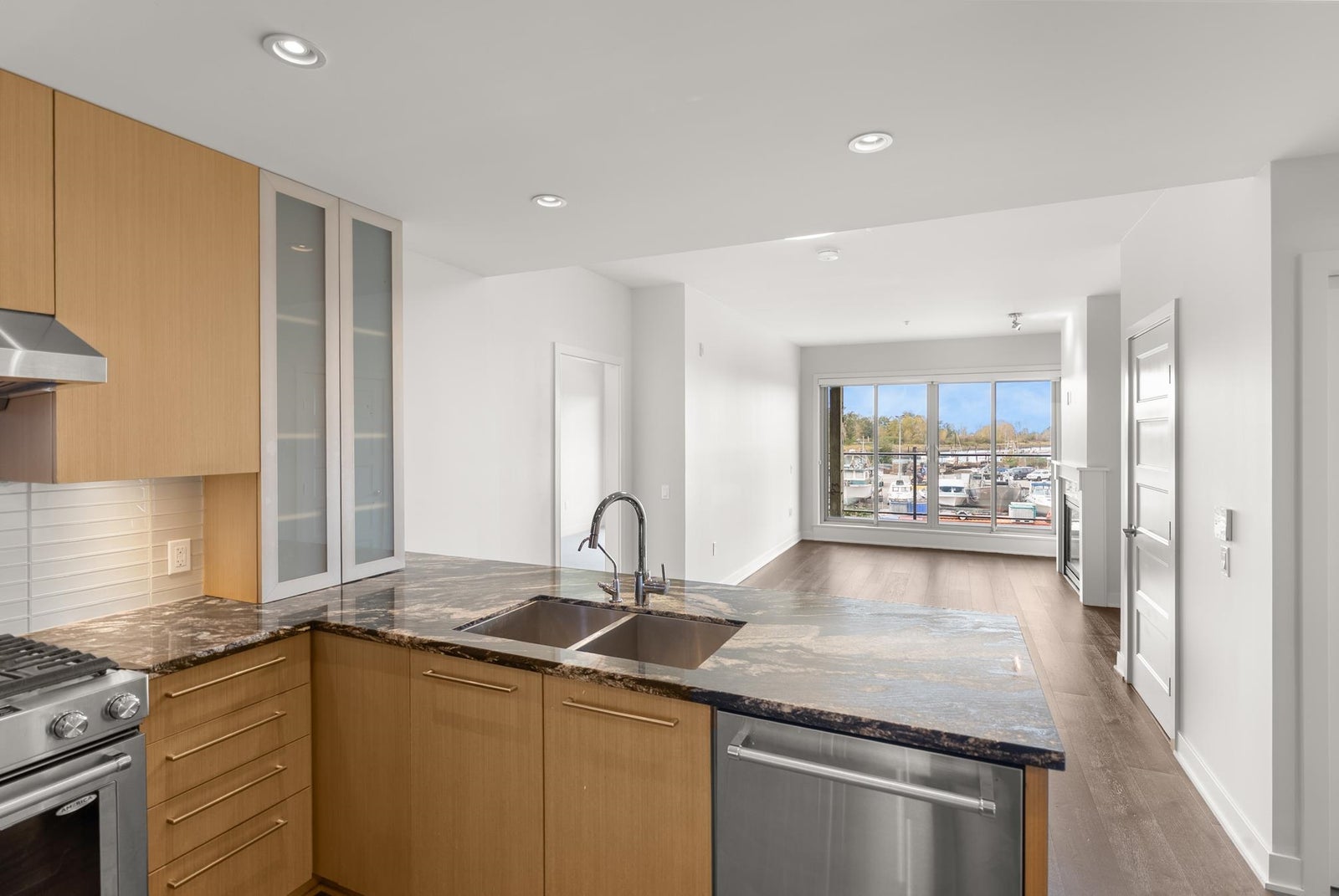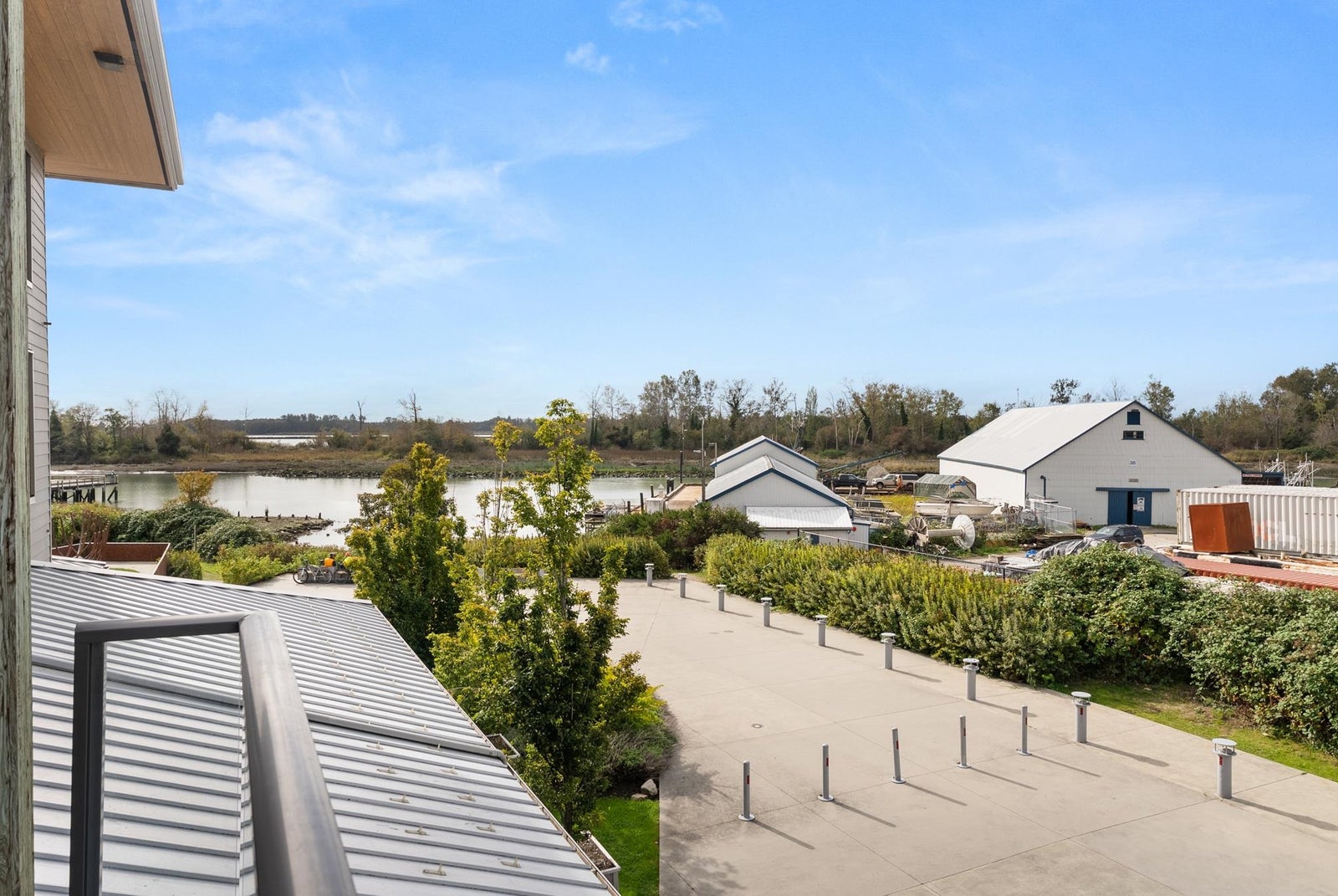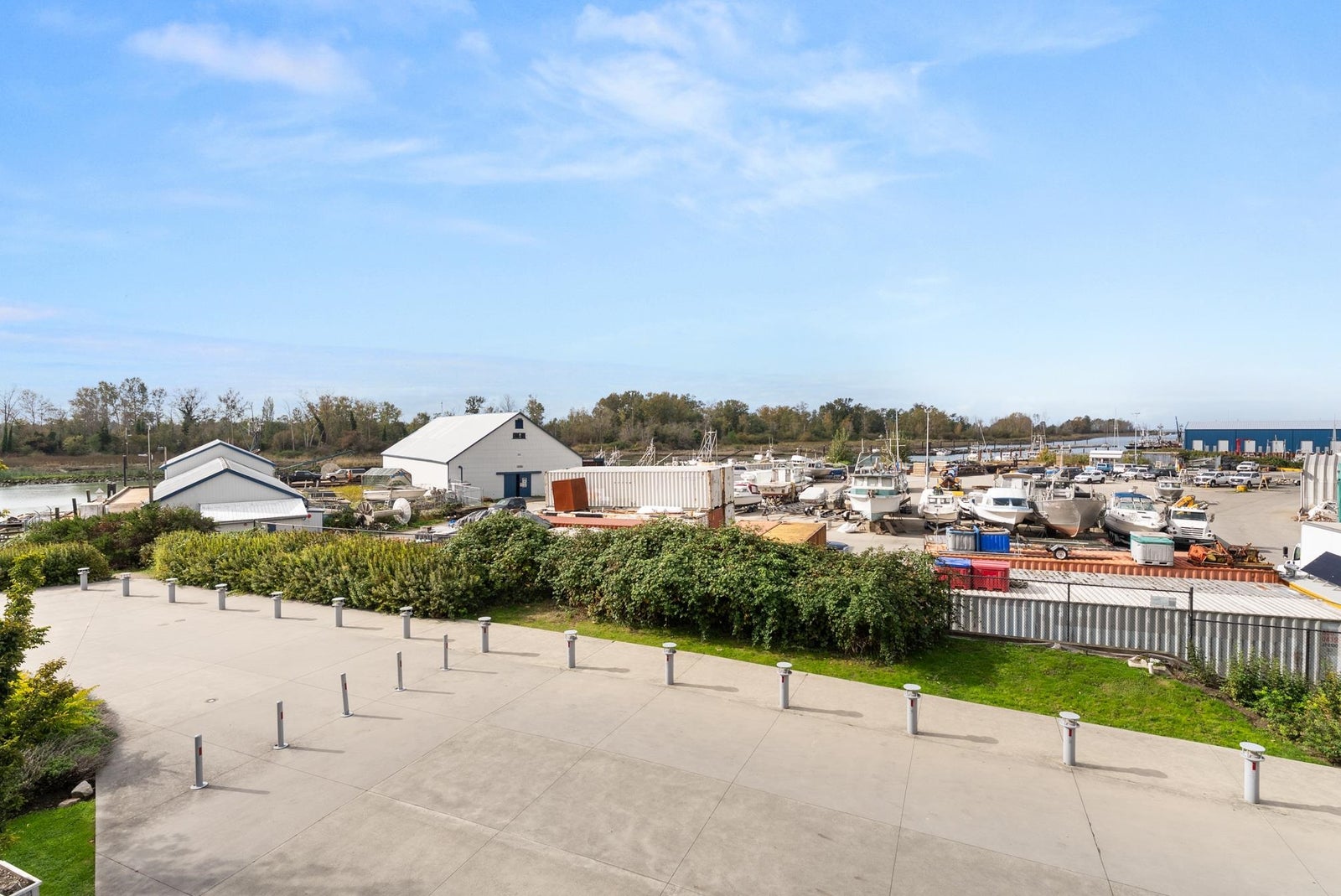 Prepare to be amazed by this treasure packed dream home! If you are seeking the good life come relax on an oversized balcony overlooking historic Steveston, the Village, Boatyard, River water views, and catch the evening SW sunset in style. Right under your elevator fingertips are Restaurants, coffee & tea shops, and the Dyke Trail accessible through wheelchair friendly access. Recently renovated/updated in 2023 with Hardwood floors, chef grade hood fan, A/C, EV charger, plus custom wardrobe storage and fireplace cabinet. This unit is efficiently spacious, bright, and convenient with double ensuites for each bedroom, a generous Den/Flex space, 2 parking spaces and a double storage locker. *some photos are virtually furnished