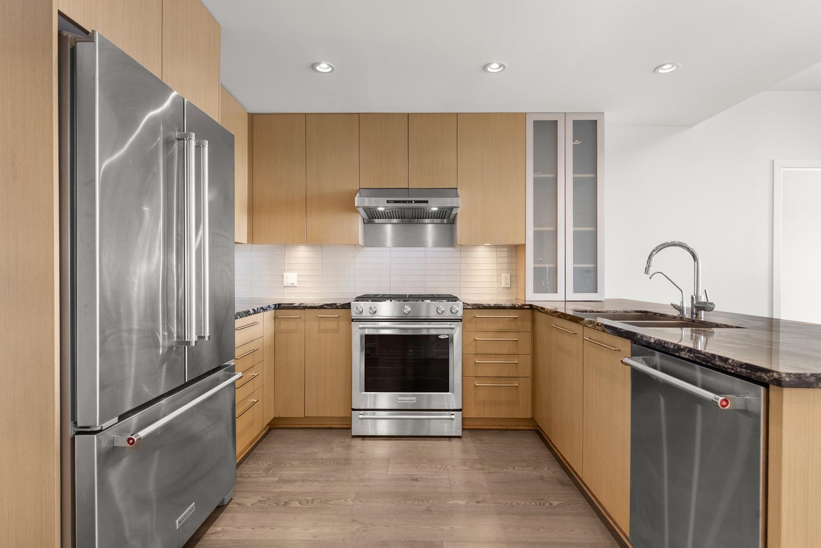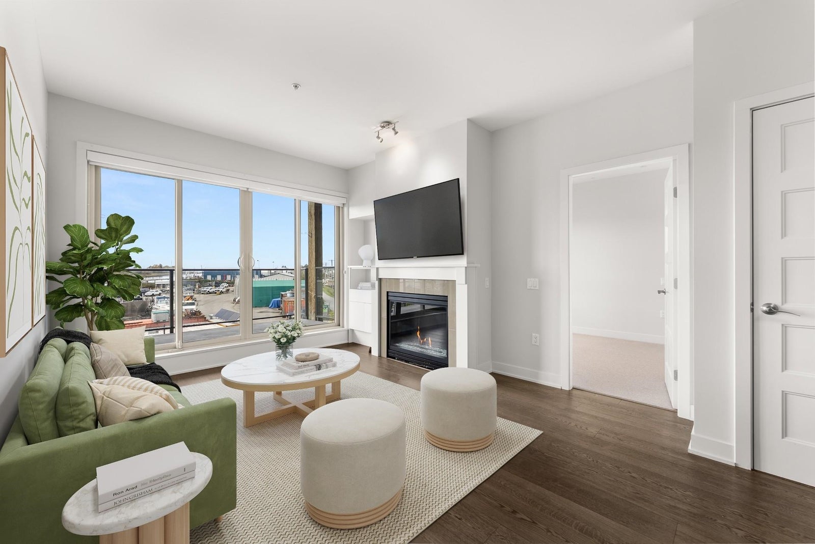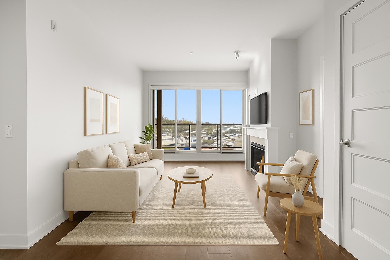 Prepare to be amazed by this treasure packed dream home! If you are seeking the good life come relax on an oversized balcony overlooking historic Steveston, the Village, Boatyard, River water views, and catch the evening SW sunset in style. Right under your elevator fingertips are Restaurants, coffee & tea shops, and the Dyke Trail accessible through wheelchair friendly access. Recently renovated/updated in 2023 with Hardwood floors, chef grade hood fan, A/C, EV charger, plus custom wardrobe storage and fireplace cabinet. This unit is efficiently spacious, bright, and convenient with double ensuites for each bedroom, a generous Den/Flex space, 2 parking spaces and a double storage locker. *some photos are virtually furnished