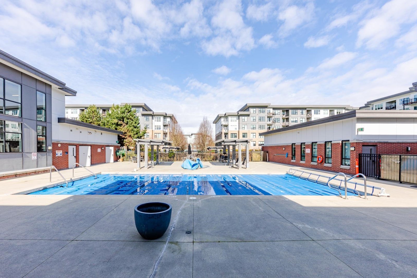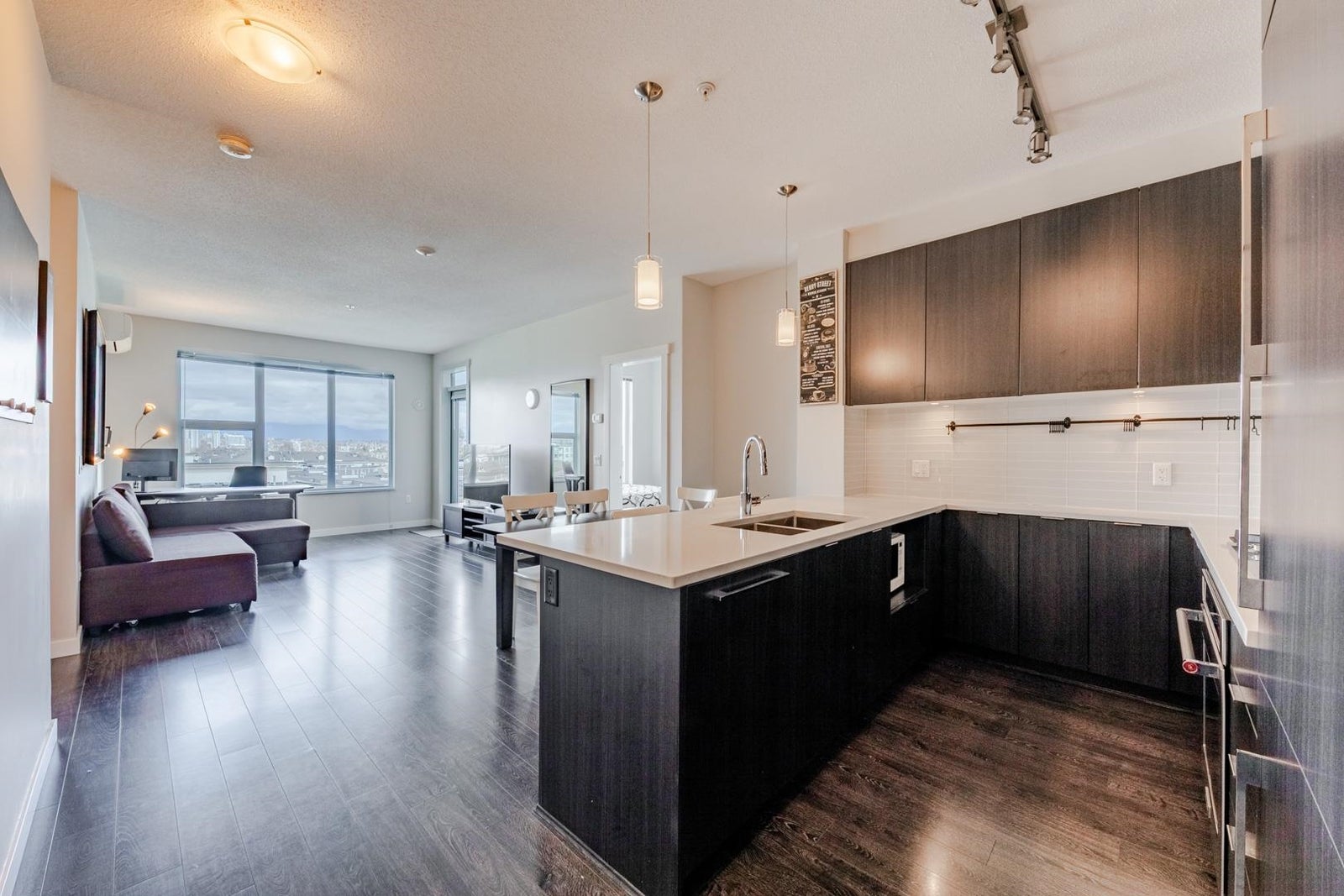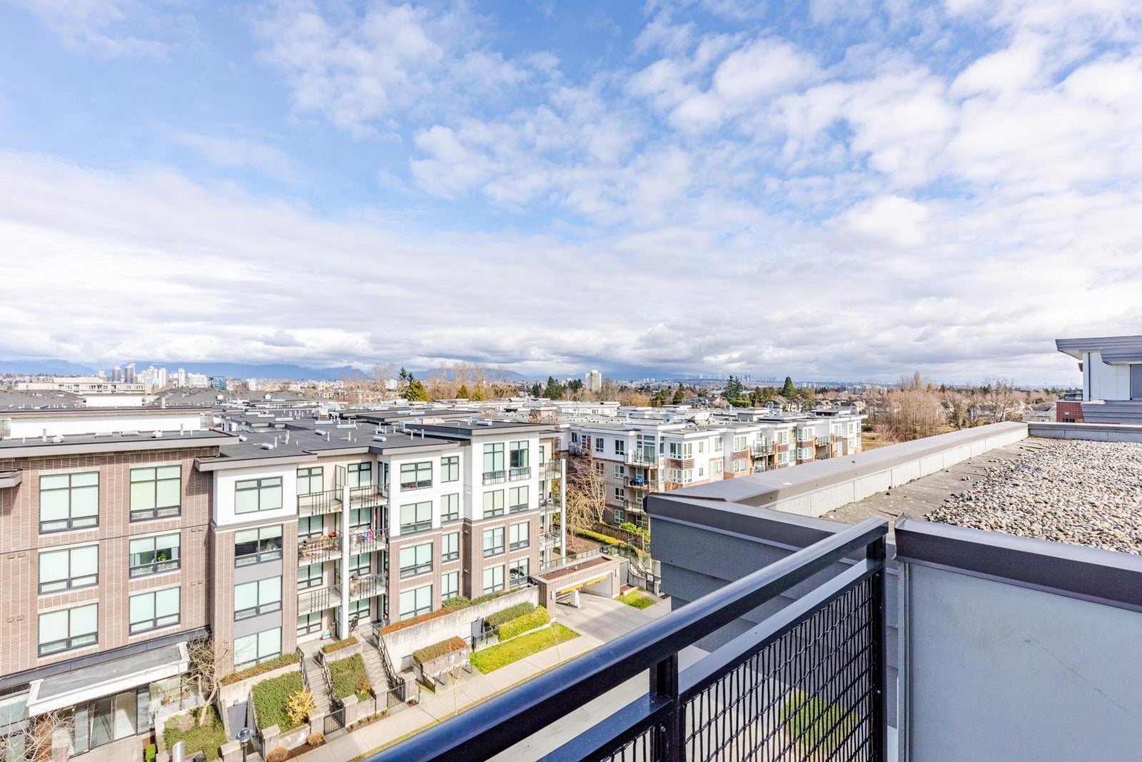 Top floor Penthouse 2 bedroom 2 bath plus den area unit in the prestigious Alexandra Court by Polygon. This quality built complex with geothermal heating & cooling providing a comfortable temperature throughout the year. This 851 Sqft unit with spacious floor plan, 9' ceiling, modern kitchen with integrated fridge & DW , quartz countertop, gas stove & much more. Residents benefit from the spectacular 12,000 sq. ft. clubhouse amenities with gym, swimming pool, and lounge. The location is unbeatable, steps to Walmart, Central shopping district, Lansdowne Mall, Kwantlen University, SkyTrain. Excellent condition. A must see!!!